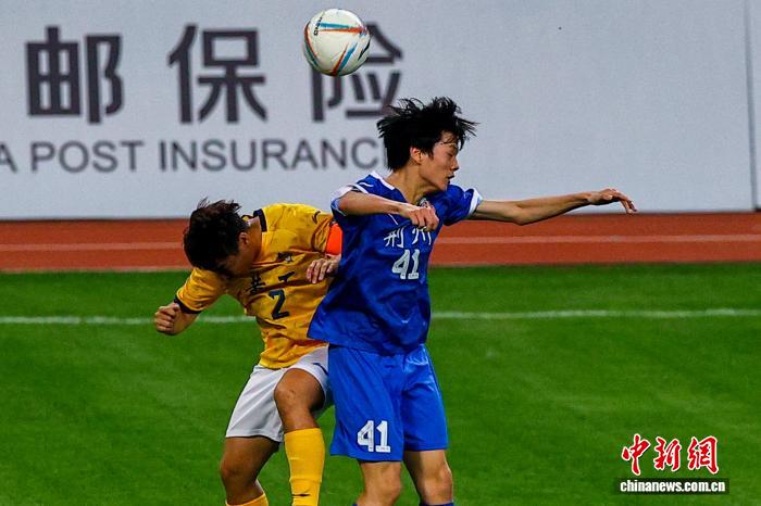 4月12日,掀幕战上黄石队球员(左)取荆州队球员角逐中争顶头球。当日,2026年湖北省垣市脚球联赛(“楚超”) 正在湖北黄石落幕。那项笼罩齐省17个市州、同146场对于绝的脚球嘉会,以“老友湖北 ‘脚’梦飞腾”为大旨,旨正在竣工“以赛营乡、以赛兴业、以赛惠平易近”。中新社记者 弛畅 摄