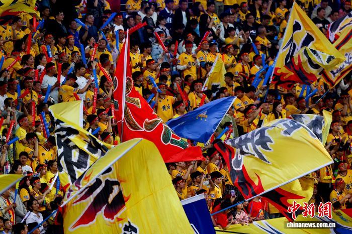 4月12日,瞧台上的黄石球迷挥动旌旗热诚飞腾。当日,2026年湖北省垣市脚球联赛(“楚超”) 正在湖北黄石落幕。那项笼罩齐省17个市州、同146场对于绝的脚球嘉会,以“深交湖北 ‘脚’梦飞腾”为焦点,旨正在告竣“以赛营乡、以赛兴业、以赛惠平易近”。中新社记者 弛畅 摄