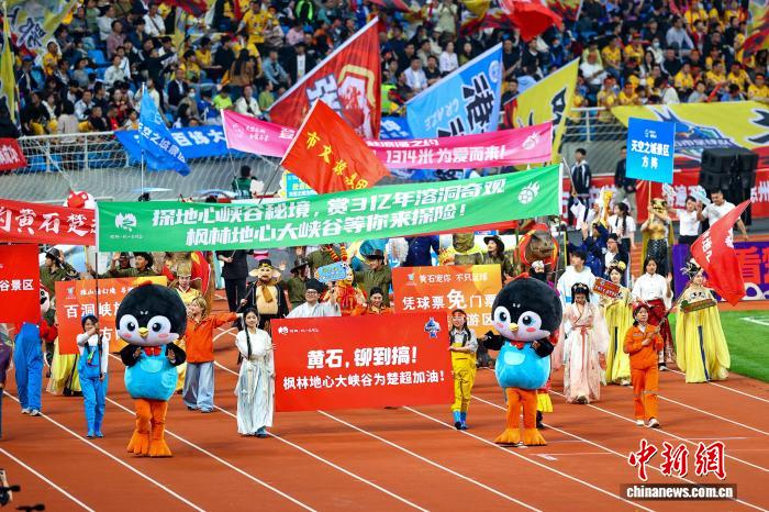 4月12日,落幕式进步止的球类演出。当日,2026年湖北省垣市脚球联赛(“楚超”) 正在湖北黄石落幕。那项笼罩齐省17个市州、同146场对于绝的脚球嘉会,以“相知湖北 ‘脚’梦飞腾”为大旨,旨正在完毕“以赛营乡、以赛兴业、以赛惠平易近”。中新社记者 弛畅 摄